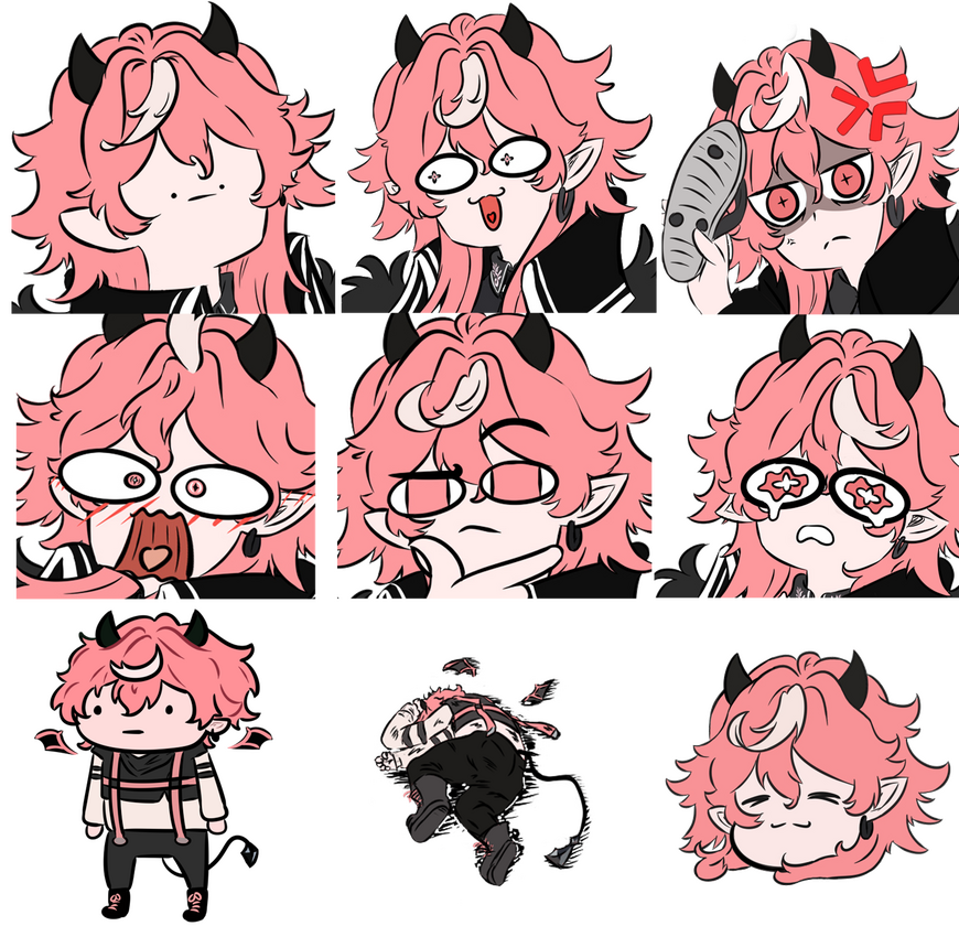 21,00 € = 3 ilustraciones / 9 emotes / 3 animaciones gif / 4 fanarts.